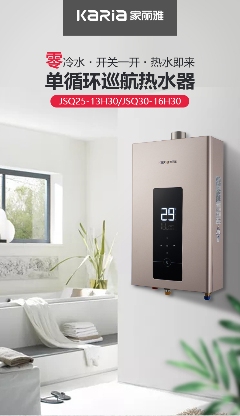 1、輕奢金頂涂板殼體,開關(guān)一開,熱水即來,單循環(huán)巡航