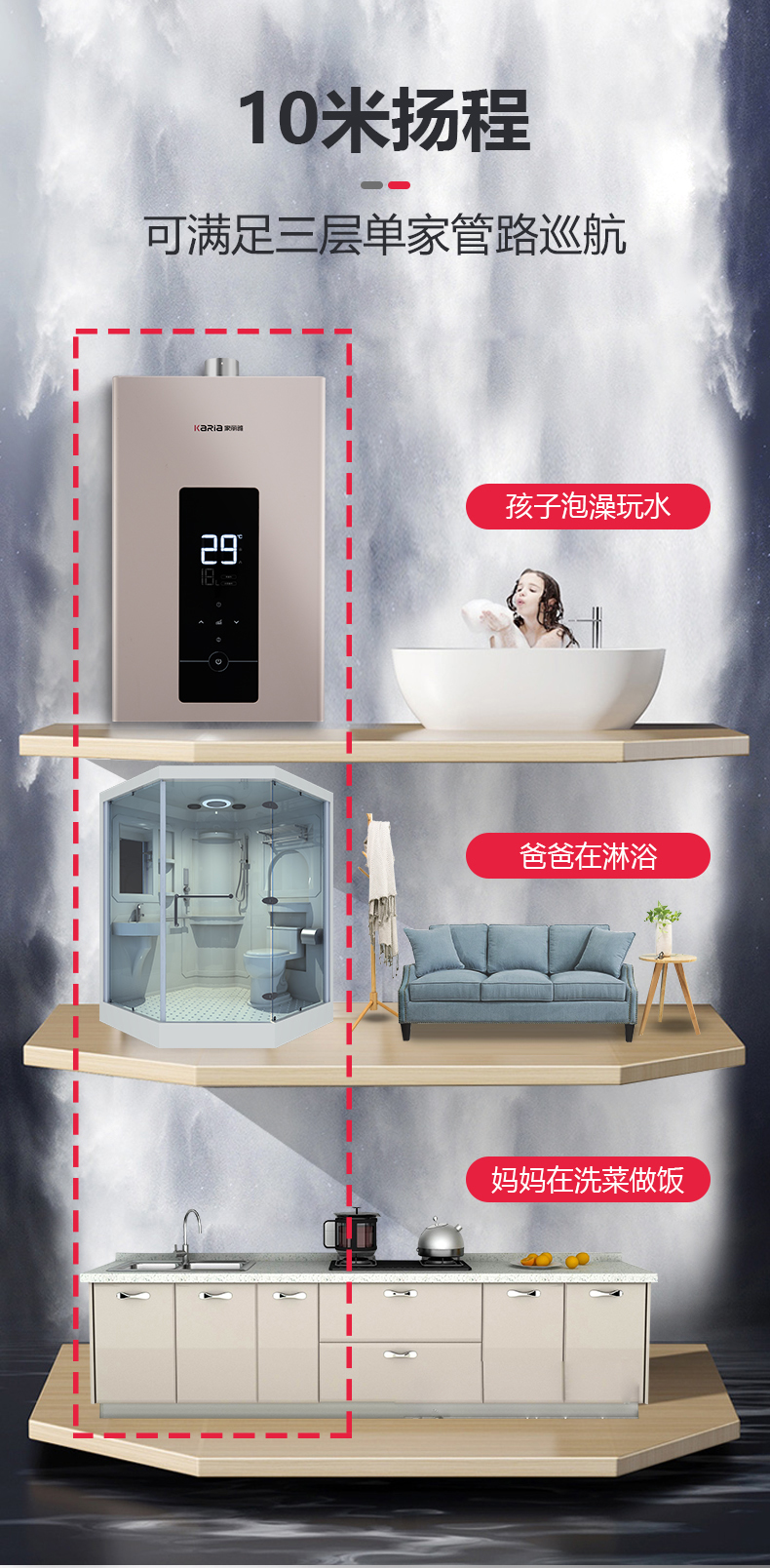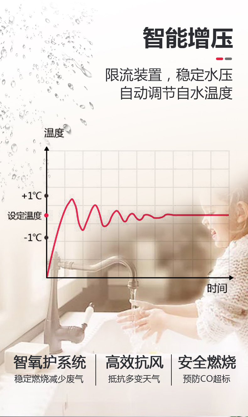3:智能增壓,一鍵隨溫感 ,水壓低時自動調(diào)節(jié)水溫