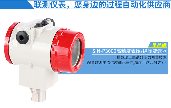 SIN-P3000單晶硅壓力變送器用于測量液體、氣體或蒸汽的液位、密度、壓力,然后將其轉變成4-20mAHART電流信號輸出,也可與HART375或BST Modem相互通信,通過他們進行參數設定、過程控制。與傳統壓力變送器的區別在于它使用的是納米單晶硅作為傳感器材料。